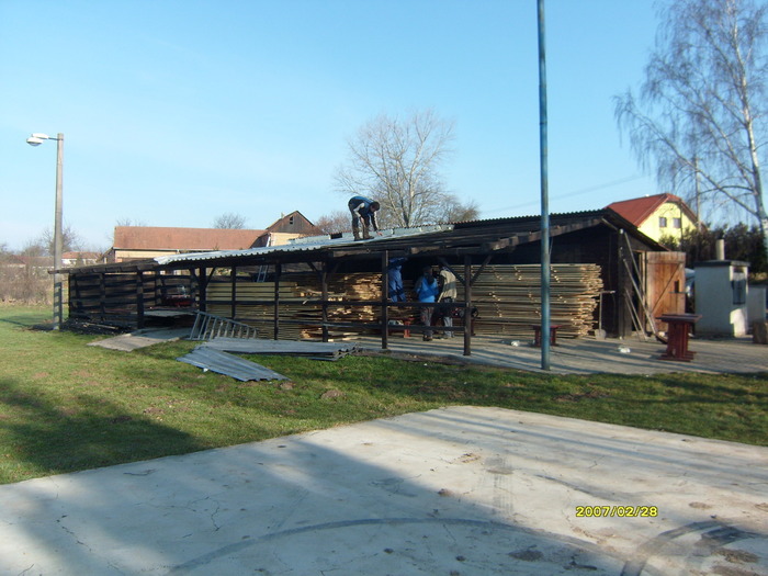 Úvod > Život v obci > Fotogalerie > Oprava střechy na hřišti